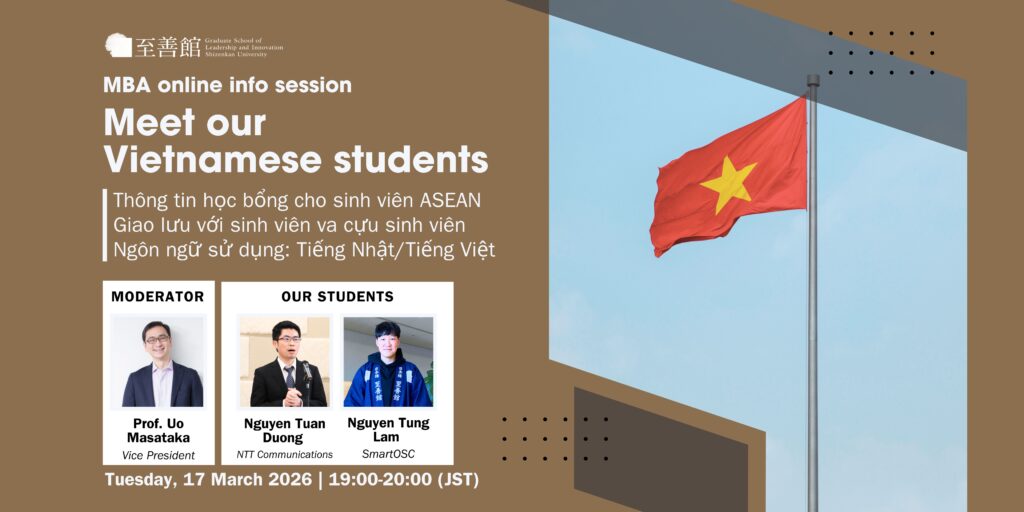 “ I wanted to study business management, so I did a lot of research online, and that is how I came across Shizenkan. Until then, I didn’t really like the idea of an MBA – it felt too focused on making money. But I became interested when I learned that Shizenkan aims to develop leaders who also possess a sense of social responsibility.